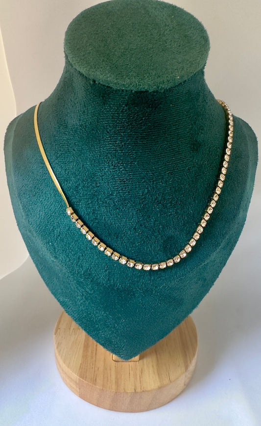 Complete your outfit with this luxurious two-piece set featuring a diamond necklace and a tennis chain. Both items are crafted with precision and care, adding a touch of elegance to your look