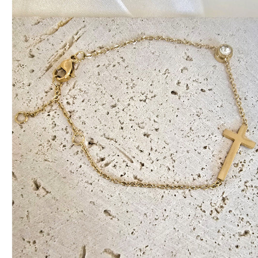 18K Gold-Plated Cross Station Necklace Bracelet Set for Women Elegant Gift