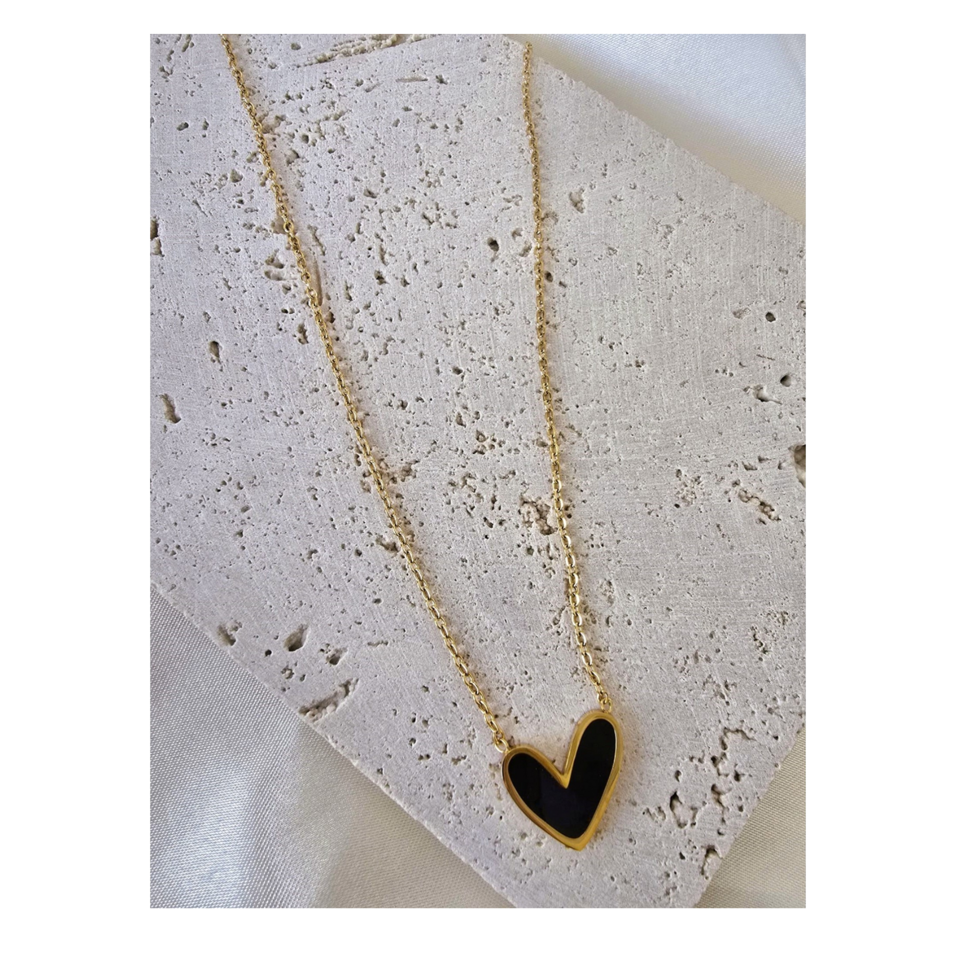 Elevate your elegance with this stunning LAPRECIEUZ DE ARTHES Jewelry Set, featuring a matching pair of earrings and a pendant necklace. Crafted with exquisite detail, each piece is 18K yellow gold Plated and adorned with a glossy black heart-shaped design—perfect for adding a touch of timeless sophistication to any outfit.