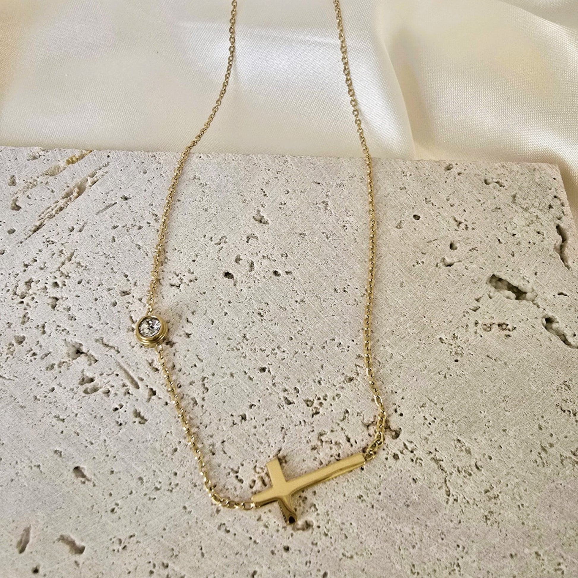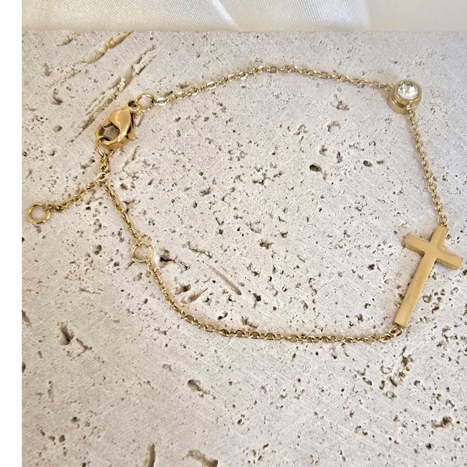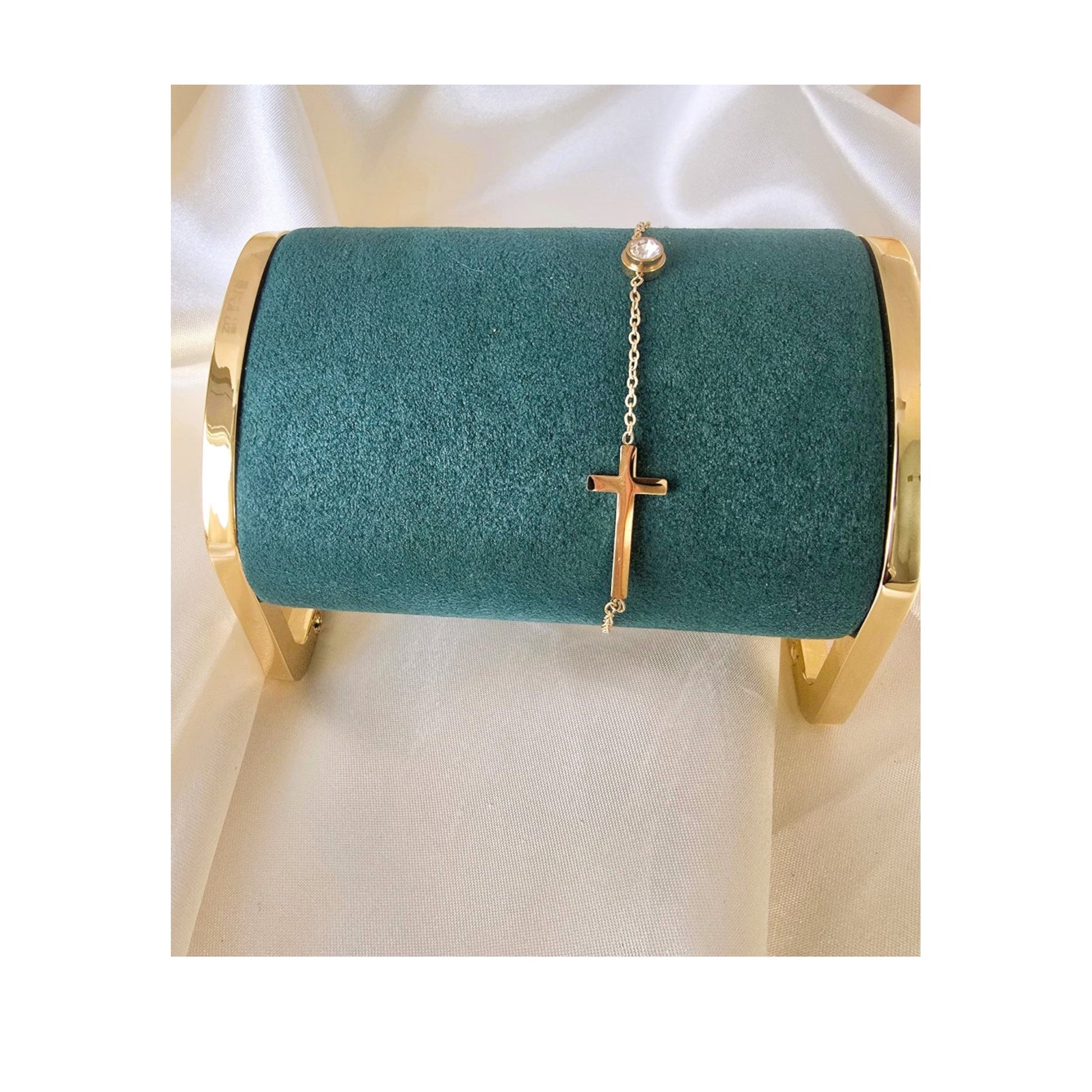 18K Gold-Plated Cross Station Necklace Bracelet Set for Women Elegant Gift